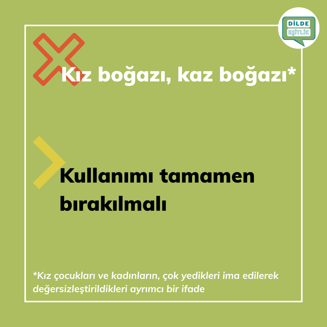 Kategoriler Cinsiyet Ayrımcılığı İçeren Atasözleri Kız boğazı, kaz boğazı Yazının yazarı Yazar Dilde Eşitlik Yazı tarihi 14.10.2020 Yorum yok Kız boğazı, kaz boğazı