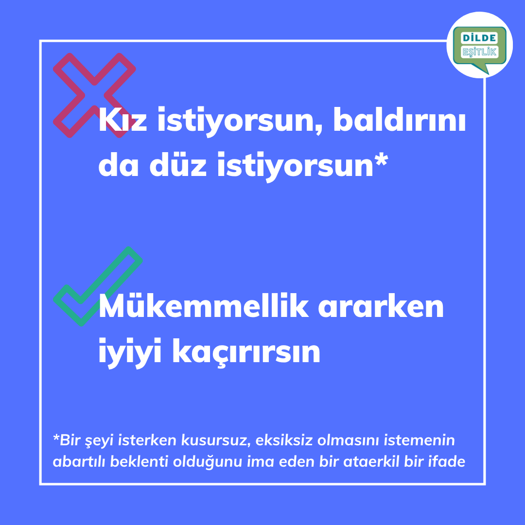 Kategoriler Cinsiyet Ayrımcılığı İçeren Atasözleri Kız istiyorsun, baldırını da düz istiyorsun Yazının yazarı Yazar Dilde Eşitlik Yazı tarihi 14.10.2020 Yorum yok Kız istiyorsun, baldırını da düz istiyorsun