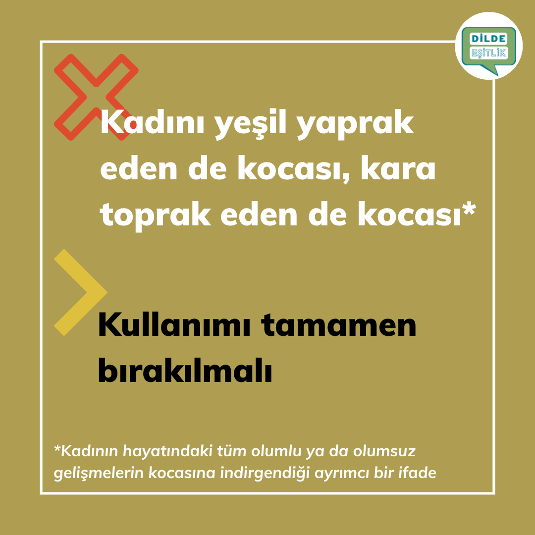 Kategoriler Cinsiyet Ayrımcılığı İçeren Atasözleri Kadını yeşil yaprak eden de kocası, kara toprak eden de kocası Yazının yazarı Yazar Dilde Eşitlik Yazı tarihi 14.10.2020 Yorum yok Kadını yeşil yaprak eden de kocası, kara toprak eden de kocası