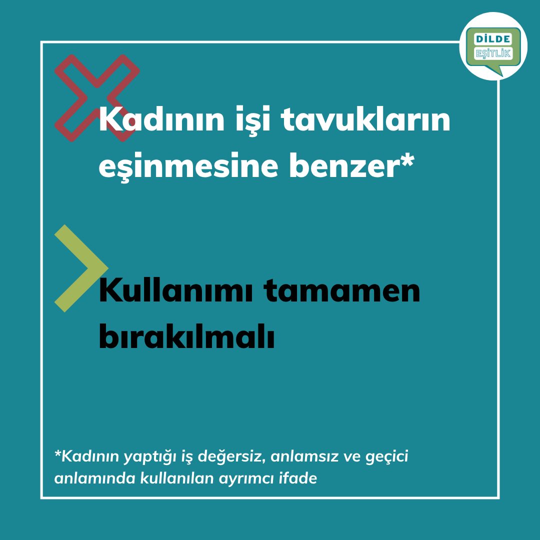 Kategoriler Cinsiyet Ayrımcılığı İçeren Atasözleri Kadının işi tavukların eşinmesine benzer Yazının yazarı Yazar Dilde Eşitlik Yazı tarihi 14.10.2020 Yorum yok Kadının işi tavukların eşinmesine benzer