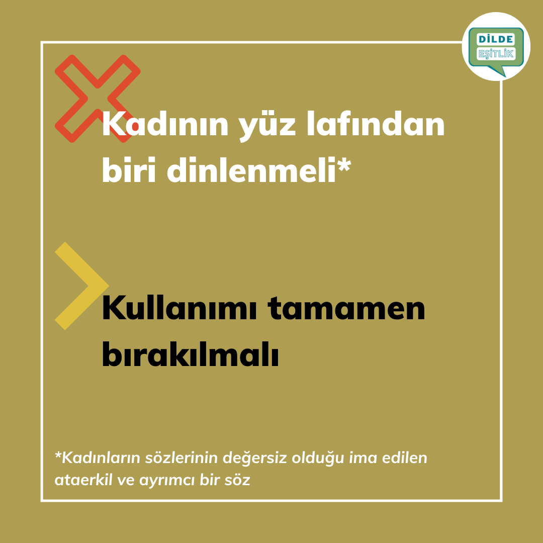 Kategoriler Cinsiyet Ayrımcılığı İçeren Atasözleri Kadının yüz lafından biri dinlenmeli Yazının yazarı Yazar Dilde Eşitlik Yazı tarihi 14.10.2020 Yorum yok Kadının yüz lafından biri dinlenmeli