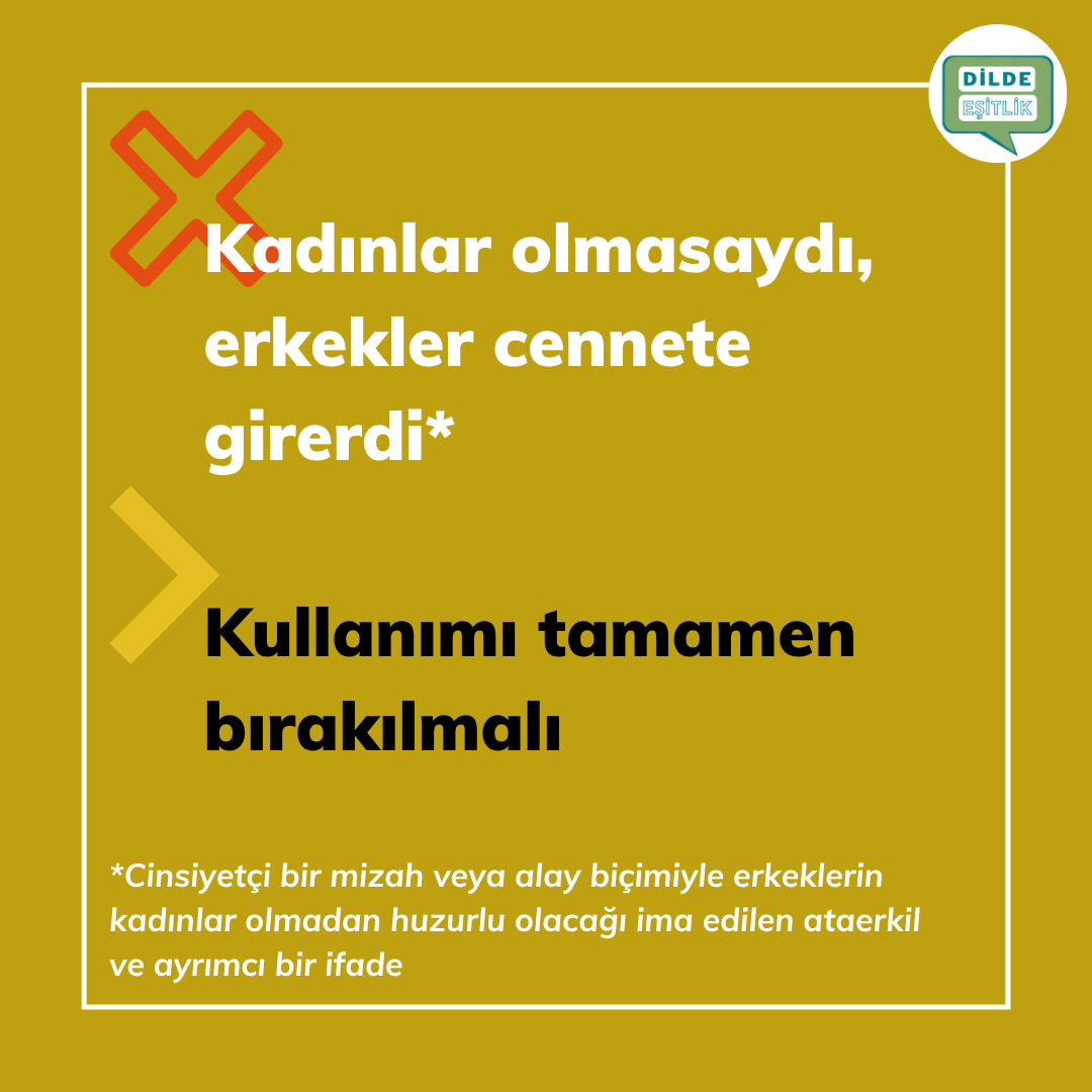 Kategoriler Cinsiyet Ayrımcılığı İçeren Atasözleri Kadınlar olmasaydı, erkekler cennete girerdi Yazının yazarı Yazar Dilde Eşitlik Yazı tarihi 14.10.2020 Yorum yok Kadınlar olmasaydı, erkekler cennete girerdi
