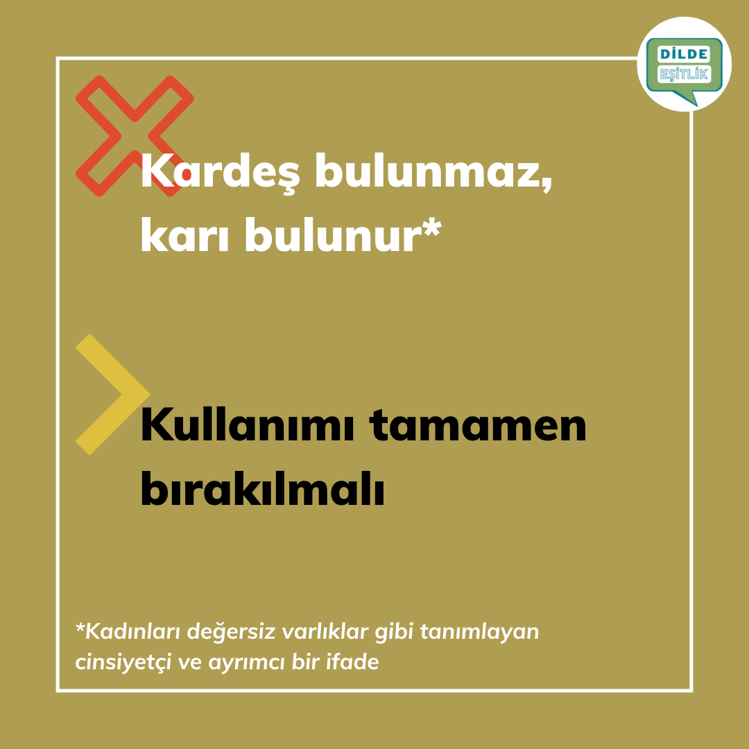 Kategoriler Cinsiyet Ayrımcılığı İçeren Atasözleri Kardeş bulunmaz, karı bulunur Yazının yazarı Yazar Dilde Eşitlik Yazı tarihi 14.10.2020 Yorum yok Kardeş bulunmaz, karı bulunur