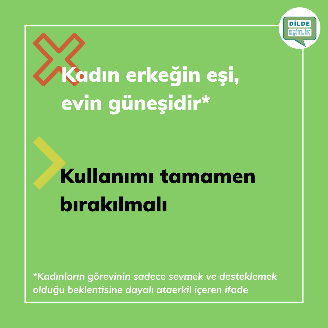 Kategoriler Cinsiyet Ayrımcılığı İçeren Atasözleri Kadın erkeğin eşi, evin güneşidir Yazının yazarı Yazar Dilde Eşitlik Yazı tarihi 14.10.2020 Yorum yok Kadın erkeğin eşi, evin güneşidir