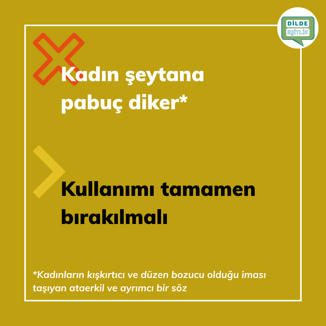 Kategoriler Cinsiyet Ayrımcılığı İçeren Atasözleri Kadın şeytana pabuç diker Yazının yazarı Yazar Dilde Eşitlik Yazı tarihi 14.10.2020 Yorum yok Kadın şeytana pabuç diker