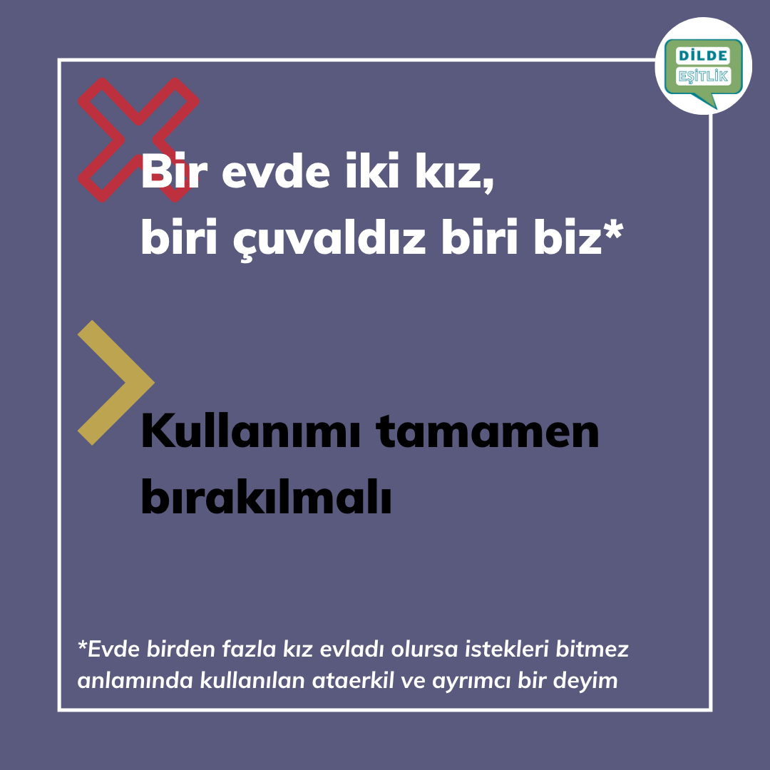 Kategoriler Cinsiyet Ayrımcılığı İçeren Atasözleri Bir evde iki kız, biri çuvaldız biri biz Yazının yazarı Yazar Dilde Eşitlik Yazı tarihi 21.10.2020 Yorum yok Bir evde iki kız, biri çuvaldız biri biz