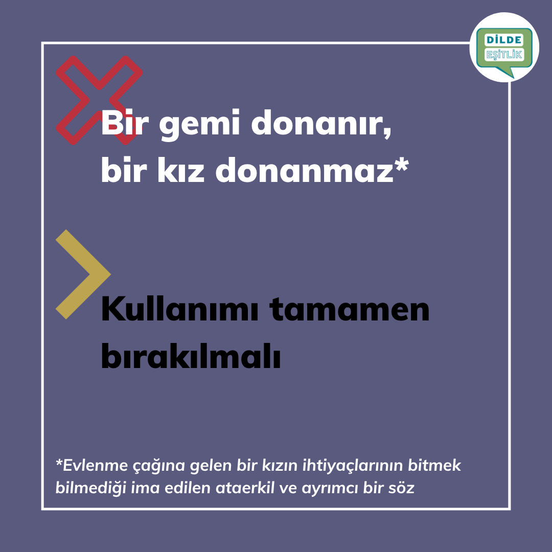 Kategoriler Cinsiyet Ayrımcılığı İçeren Atasözleri Bir gemi donanır, bir kız donanmaz Yazının yazarı Yazar Dilde Eşitlik Yazı tarihi 21.10.2020 Yorum yok Bir gemi donanır, bir kız donanmaz
