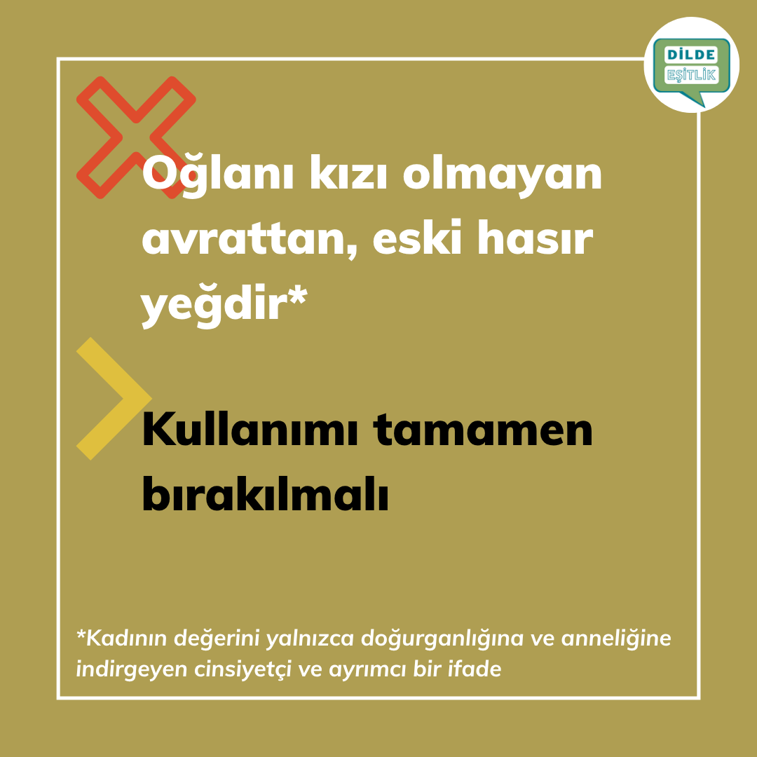 Kategoriler Cinsiyet Ayrımcılığı İçeren Atasözleri Oğlanı kızı olmayan avrattan, eski hasır yeğdir Yazının yazarı Yazar Dilde Eşitlik Yazı tarihi 14.10.2020 Yorum yok Oğlanı kızı olmayan avrattan, eski hasır yeğdir ← Laz’ın kafası on ikiden sonra çalışır → Oğlunu seven hocaya, kızını seven kocaya verir Bir yanıt yazın Yanıtı iptal etE-posta adresiniz yayınlanmayacak. Gerekli alanlar * ile işaretlenmişlerdirYorum * Ad E-posta İnternet sitesi Daha sonraki yorumlarımda kullanılması için adım, e-posta adresim ve site adresim bu tarayıcıya kaydedilsin. Type in the text displayed above Δ
